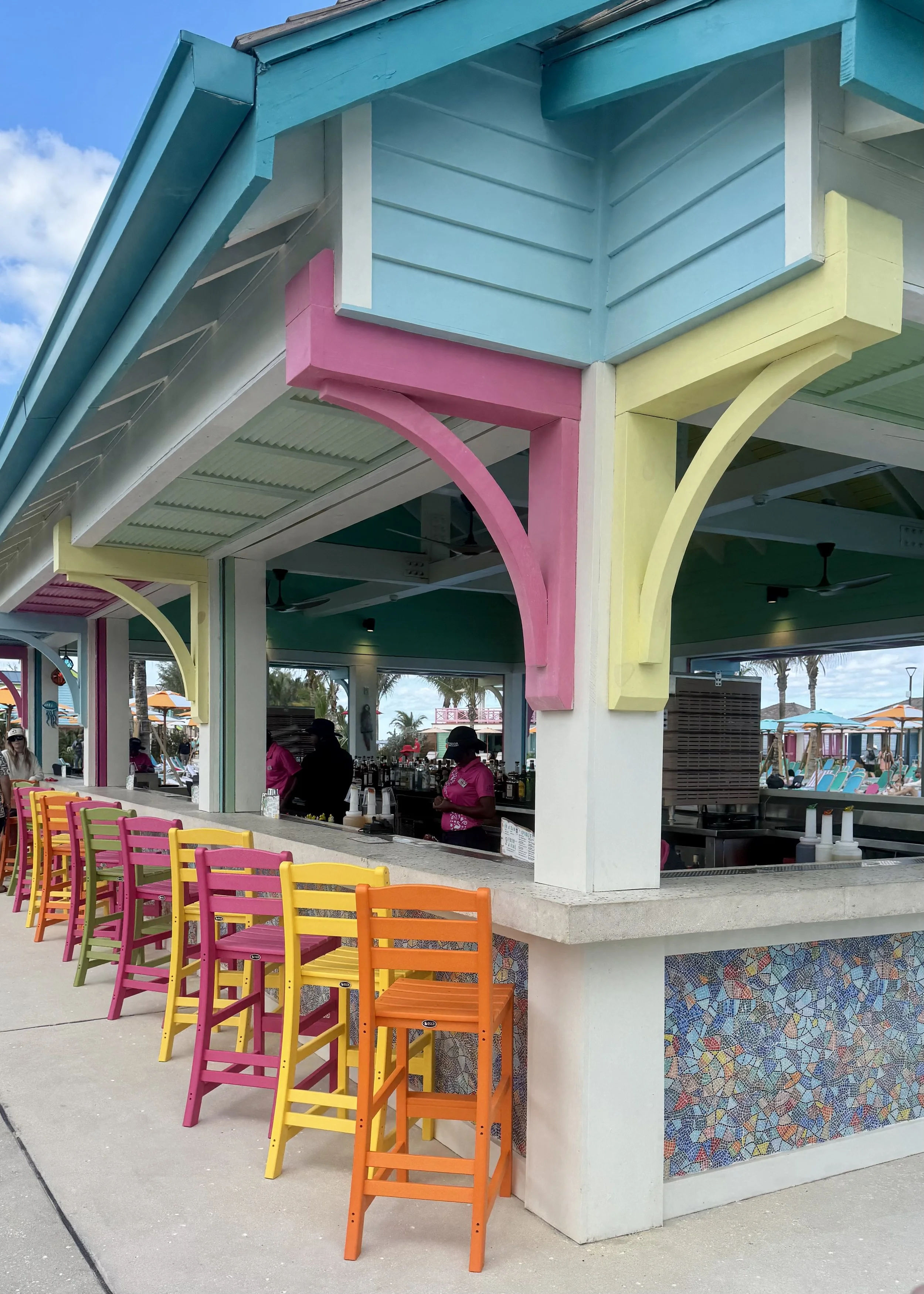 But is it all worth it? With prices as they currently are, we don’t think so. With it being over $100 per person, I imagine that many people, like us, will see it as a one and done experience. My husband and I couldn’t agree, however, on what would be the right price for us to go back. I was thinking that I would go back if prices got down to $80, while my husband wanted it to be even lower than that. While it was nice to have unlimited drinks, I would almost prefer to pay less and pay for drinks as we go so that we could enjoy a more affordable experience. Also, I would want the variety and luxury of the food items to be greatly improved before I visit again. As I said, we enjoy a quiet ship on port days and so will likely opt to stay on the ship next time. Another thing that we noted was that our experience seemed very similar to the complimentary visit to the Beach Club at Bimini that you get with Virgin Voyages. The drinks are not included on Bimini but are very, very good, the vibe is excellent and the food so, so much better.