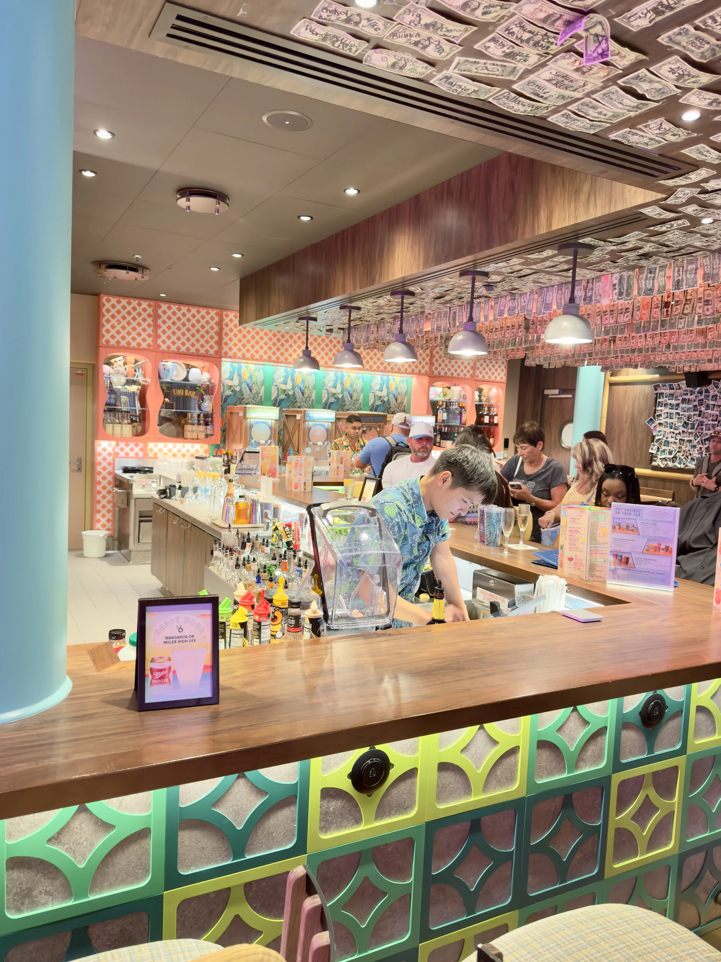 Utopia has made some other smaller but smart choices to help increase the enjoyment of its passengers. For example, up at the sports deck, instead of a regular bar, they have a slushy hut where you can get alcoholic or non-alcoholic icee beverages. On the boardwalk, they have a store next to the candy store filled with merchandise just for kids. In Central Park, they have put the Izumi and Hibachi restaurant, including the Izumi To Go, which was introduced on Icon. Wonderland was taken off of this ship and Giovanni’s was put in its place so that you can sit outside overlooking the Boardwalk while enjoying your wine and pasta. There is a non-smoking casino, which is a nice addition. And, the Bionic Bar was replaced by The Pesky Parrot, which is a fun plussed version of the tiki bar found previously on some of the ships. Those were just some of the differences that stood out most to us.